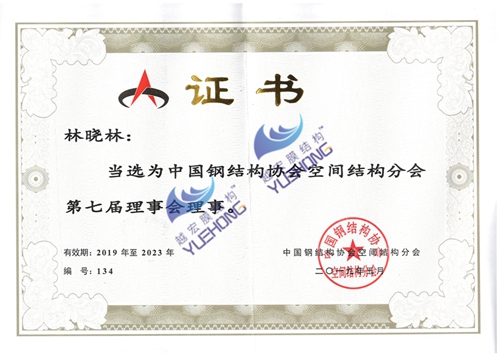 最關(guān)鍵值得慶祝又高興的事,想和大家一起分享,廣州市越宏膜結(jié)構(gòu)工程有限公司總經(jīng)理被當選為中國鋼結(jié)構(gòu)協(xié)會空間結(jié)構(gòu)分會第七屆理事會理事,并頒發(fā)了榮譽證書。熱烈祝賀。!